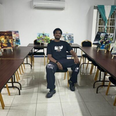 On November 12 and 13 the St. Eustatius Public Library hostedthe exhibition of a young Haitian painter, sculpture, and digital artist residing in the Netherlands, Frederick Calmes. The exhibition consists of twelve artworks created for the family heritage project “Remember Statia: Tracing Our Origins” organized by the Bigi Bon foundation and the St. Eustatius Afrikan Burial Ground Alliance from April to October 2024.